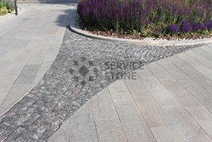 2018 год. Фото пиленой брусчатки "Гранатовый Амфиболит", размер 200х50х50, Парк "Тюфелева роща", ЖК "Зиларт", г. Москва.![]() |