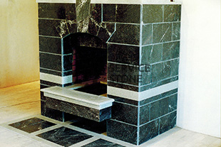 2012 год. Облицовка камина гранитной плитой "Гранатовый Амфиболит", частный дом в г. Одинцово.
