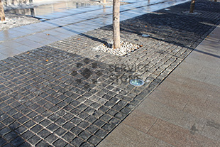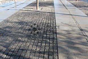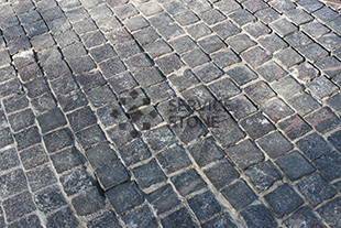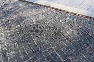 2013 год. Фото брусчатки 100x100x50 из гранита "Гранатовый Амфиболит", мощение в Парке искусств "Музеон", г. Москва.