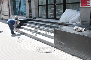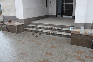 Возможно, вам понравится комбинированный вариант. В этом случае проступи будущих ступеней проходят специальную обработку при высокой температуре или методом бучадирования, что предотвращает скольжение. Остальную же часть крыльца, по которой вы не собираетесь ходить, можно отполировать, подчеркнув красоту природного камня и раскрыв насыщенность его оттенков. Хорошим примером могут в этом случае послужить станции метро, отделанные красивыми гранитными плитами.