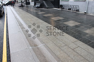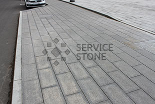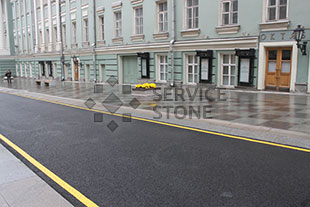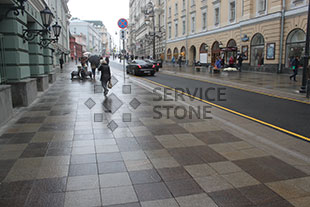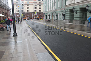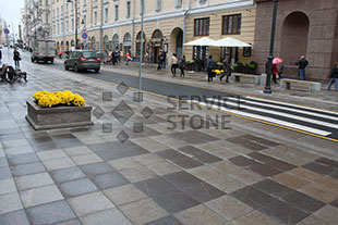 Тротуар замощен гранитной плитой, этот материал становиться все более популярным при мощении тротуаров, бульваров, площадей.