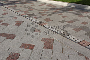 Структура минерала допускает вкрапления кварца и слюды, поэтому водоотводы кроме основной своей функции выполняют еще и декоративную. Они подчеркивают границы пешеходной зоны, визуально выделяя ее. Красивы смотрятся благодаря разным фактурам и оттенкам камня. И, конечно же, при правильной установке обеспечивают сухость пешеходной и автомобильной зон.