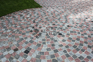 2015 год. Фото мощения колотой гранитной брусчаткой "Лезниковское" 100х100х50, территориия загородного дома, д. Рождественно, МО.
