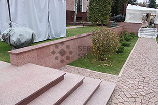 2015 год. Фото облицовки парапетов гранитной плитой "Лезниковское", территориия загородного дома, д. Рождественно, Одинцовский район.