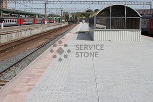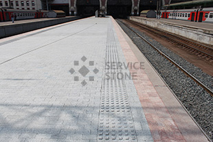 2015 год. Фото мощения пиленой гранитной брусчаткой "Лезниковское" 200х100х50, платформа Казанского вокзала, г. Москва.