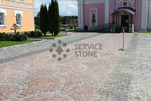 2016 год. Фото мощения колотой брусчаткой из Лезниковского гранита 100х100х50 на территории Троице-Одигитриевского ставропигиального женского монастыря.