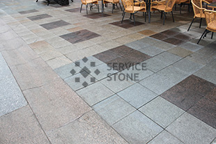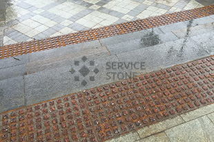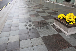 2015 год. Фото брусчатки 200х100х80 и ступеней из гранита "Цветок Урала", г. Москва.