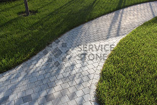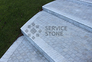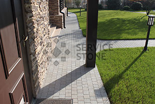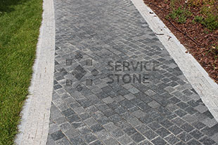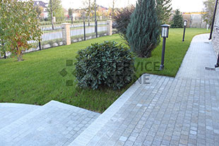 2015 год. Фото мощения пиленой гранитной брусчаткой "Камбулатовское" на территории загородного дома, Московская область.