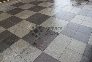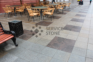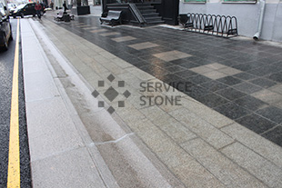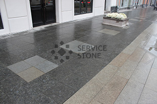 2013 год. Мощение плитой из гранита Павловского месторождения 400x400x80 на улице Большая Дмитровка, г. Москва.