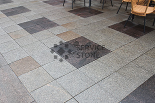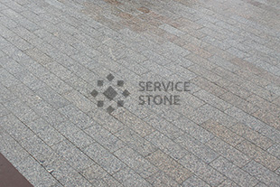 2014 год. Фото мощения гранитной брусчаткой 10х10х5см, колото-пиленая, д. Немчиново (Одинцовский район).