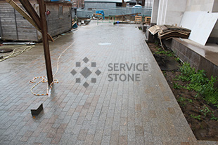 2013 год. Фото укладки брусчатки из Павловского гранита 200х100х50, коттеджный посёлок "Барвиха ХХI", д.Рождественно.
