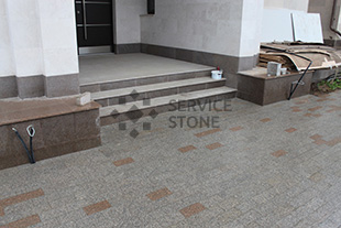 2016 год. Фото колото-пиленой брусчатки 10х10х5см, мощение территории загородного дома, Московская область.![]() |