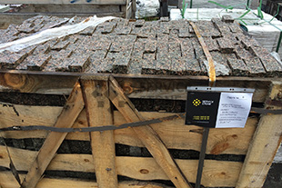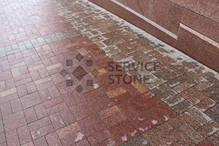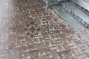 Фото мощения пиленой гранитной брусчаткой "Васильевское" 200х100х50, г. Москва![]() |