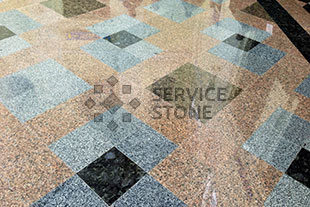 2013 год. Фото мощения гранитной плитой "Волга Блю" в Парке искусств "Музеон", г. Москва.![]() |