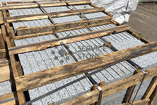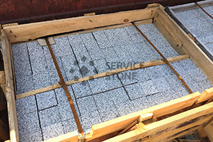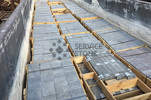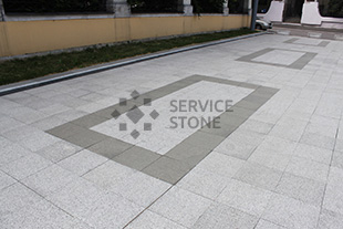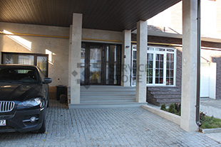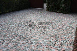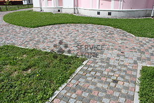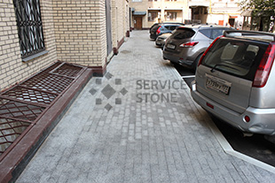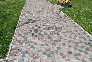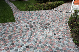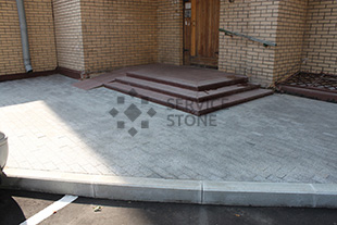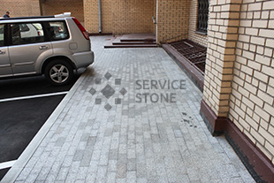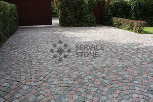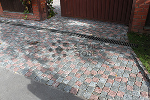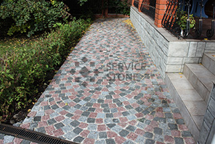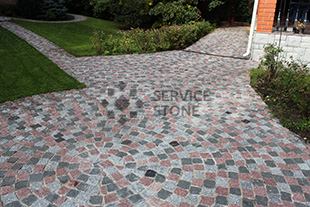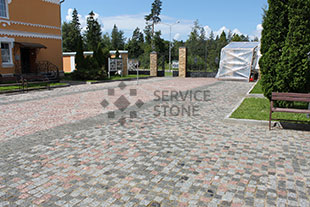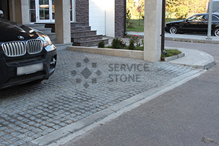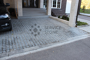2016 год. Фото мощения колотой брусчаткой из Покостовского гранита 100х100х50 на территории дома, д. Лапино, Одинцовский район.![]() |