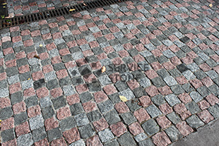 2015 год. Фото мощения галтованной гранитной брусчаткой "Покостовское" 100х100х50, г. Москва.
