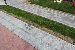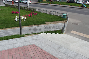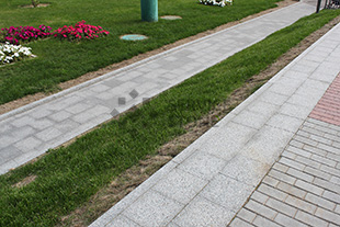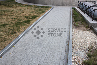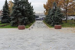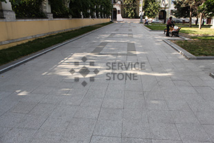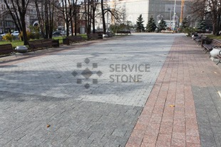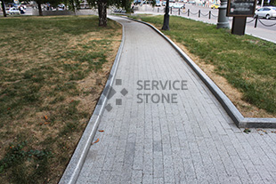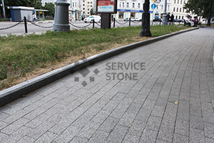2014 год. Фото мощения пиленой гранитной брусчаткой "Покостовское" 200х100х50, сквер на Устьинской набережной, г. Москва.