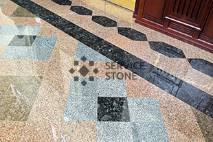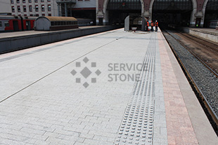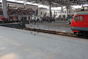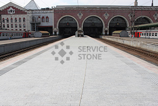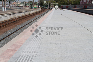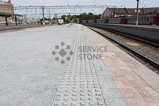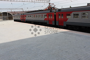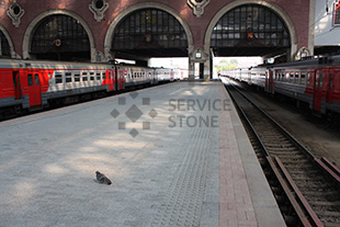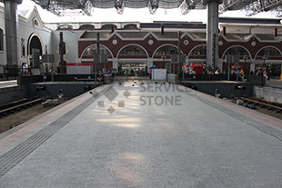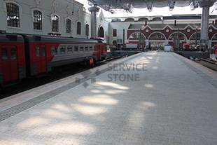 2015 год. Фото мощения пиленой гранитной брусчаткой "Покостовское" 200х100х50 на платформе Казанского вокзала, г. Москва.