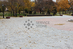 2014 год. Фото мощения гранитной брусчаткой Покостовского месторождения 100х100х50, Парк искусств "Музеон", г. Москва.