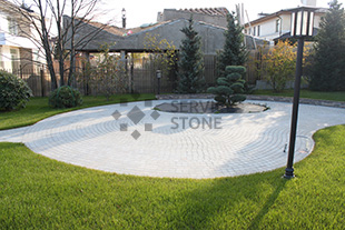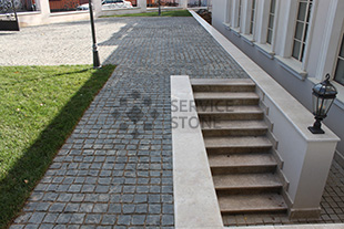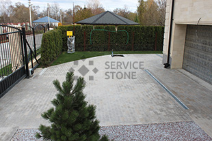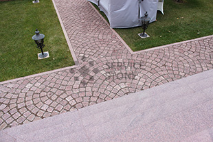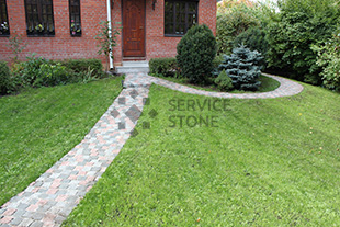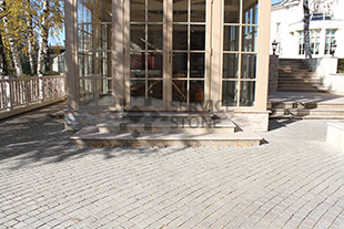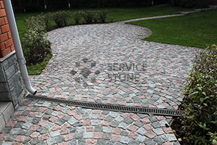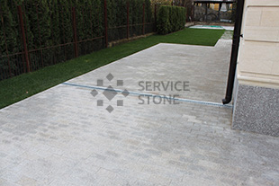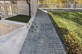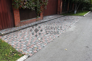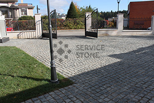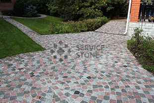 Фото мощения колотой гранитной брусчаткой на территории загородного дома