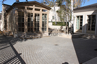 Фото мощения пиленой гранитной брусчаткой на территории загородного дома