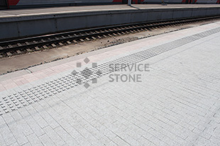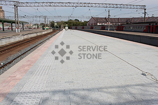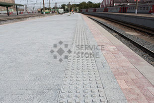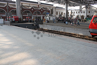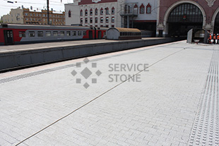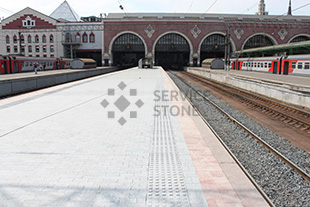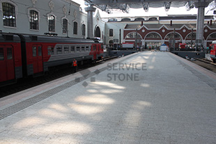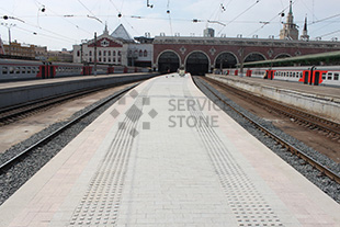 Фото мощения гранитной брусчаткой и тактильной плитой на платформе Казанского вокзала