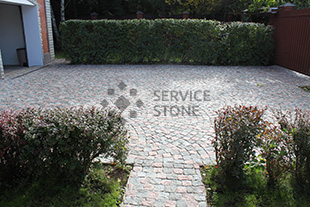 Фото мощения гранитной брусчаткой и бордюром "Павловское" территории частного дома