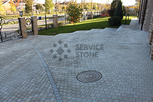 Нужно учесть, что несмотря на плотно прилегающие швы брусчатки, основание пропитывается водой. Поэтому в основание необходим водонепроницаемый дренажный несущий слой (гравий, щебень). Тогда часть поверхностной воды может быть отведена напрямую через брусчатку и несущий слой в грунт. В любом случае, покрытие из брусчатки должно обязательно иметь уклоны и водостоки для отвода дождевой воды. Это необходимо чтобы под брусчаткой не образвалось "болото".