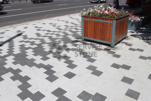 Фото мощения пиленой гранитной брусчаткой на прилегающей территории "МБО Оргбанк"