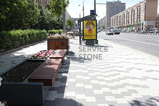 Фото укладки гранитной брусчатки на территории остановки "Староалексеевская улица", город Москва