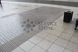 Выбор материала для тактильных плитКлючевое требование к тактильным плитам – их рифленая поверхность не должна стираться, поскольку это может нести опасность для жизни людей с плохим зрением. Самые прочные и надежные модели производятся из гранита. Данный материал характеризуется максимальной износоустойчивостью и сохраняет эксплуатационные характеристики десятилетиями. Гранитные плиты не придется периодически менять, поскольку они долгие годы будут выполнять свою направляющую и предупреждающую роль. Указатели из гранита стоит устанавливать в местах, где интенсивность движения людей постоянно высокая. В соответствии с требованиями ГОСТ, при использовании для оформления дорожек брусчатки из гранита, нужно подбирать и гранитные тактильные плиты. Модели из других материалов в данном случае не подходят. Тактильные плиты из гранита Габбро с квадратными, продольными и диагональными рифамиГород: Москва Дата: Июнь 2020 |