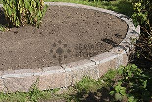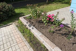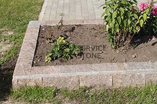 Сентябрь 2013 года. Отделка гранитным цокольным камнем ограждений клумб и цветников