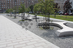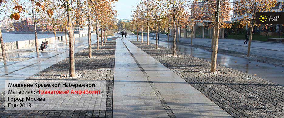 Апрель 2015. Фото мощения гранитом "Мансуровское" и "Габбро" в парковой зоне на Краснопролетарской улице, г. Москва