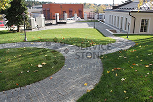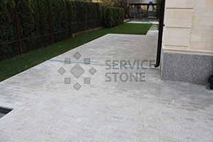 Август 2016. Фото мощения колотой гранитной брусчаткой на территории загородного дома, д. Лапино, Одинцовский район, Московская область