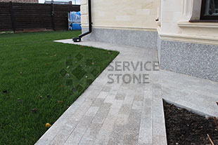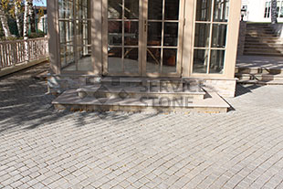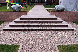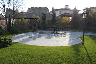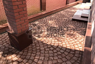 Июль 2015. Фото мощения колотой гранитной брусчаткой "Лезниковское" на территории загородного дома, д. Рождественно, Одинцовский район
