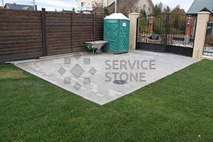 Сентябрь 2015. Фото мощения гранитной брусчаткой "Сосновый Бор" территории загородного дома, микрорайон Птичное, г. Москва