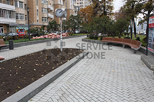 Июль 2020 год. Мощение пиленой гранитной брусчаткой "Габбро-диабаз" размер 100х100х80 мм, «Камбулатовское» 50х50х50 мм, г. Москва.![]() |