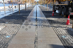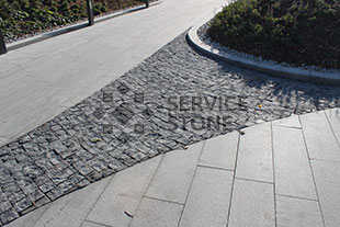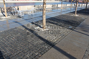 - выбирая гранитную брусчатку, нужно помнить, что, благодаря тому, что она укладывается на песчаную подушку, обеспечивается чудесный дренажный эффект и крайне высокая устойчивость к размытию;