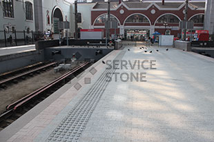 Август 2015. Фото мощения гранитной брусчаткой платформы Казанского вокзала, г. Москва