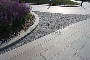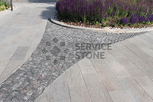Фото применения пилено-колотой брусчатки Гранатовый Амфиболит