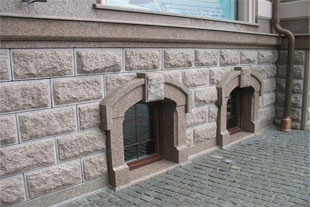 Облицовка гранитной цокольной плиткой "Скала" Цокольная плитка "Скала" из гранита используется для отделки цоколей зданий.